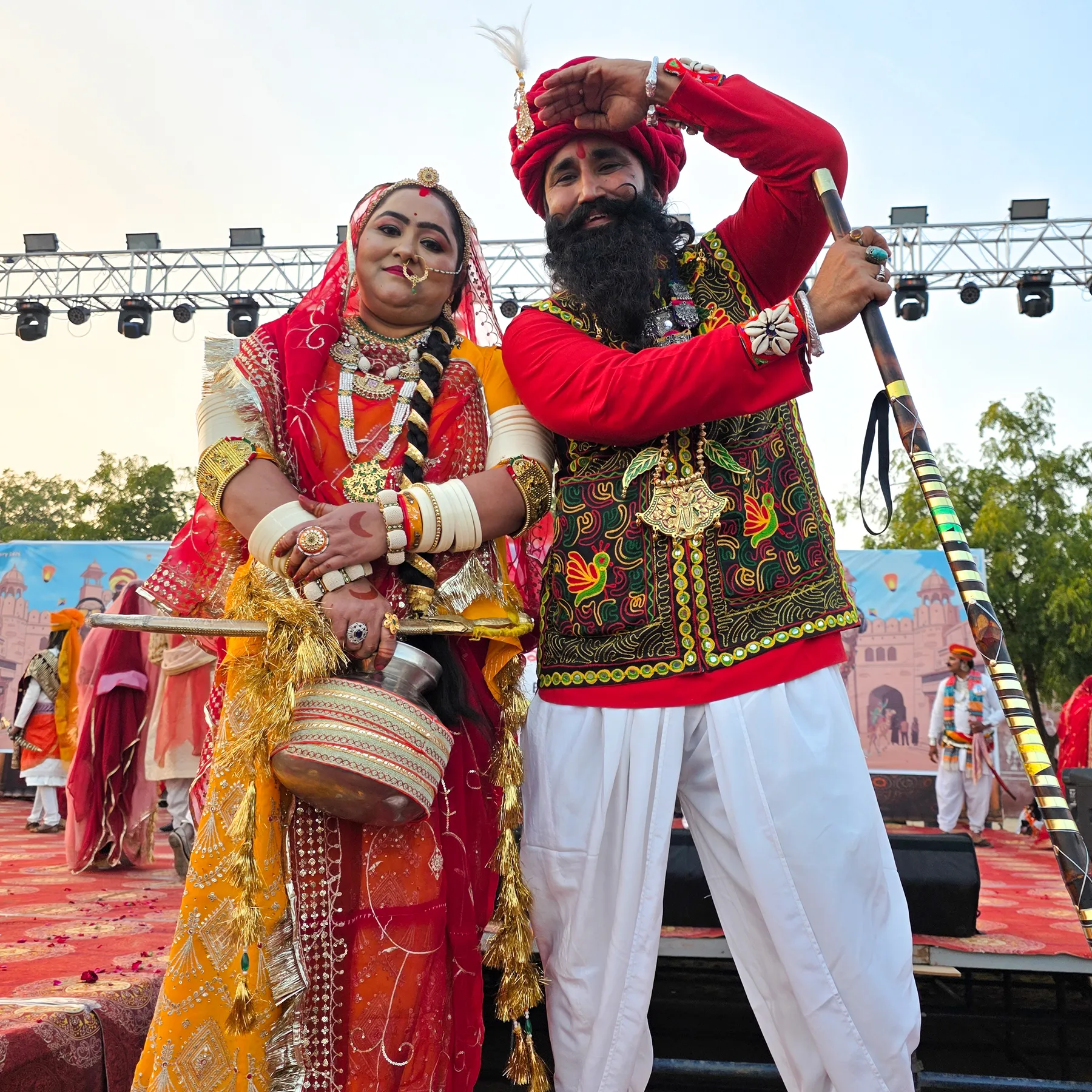 राजस्थान की अमर प्रेम कहानी 'ढोला-मारु' के रूप में कपल्स ने भाग लिया। सजे-धजे जोड़ों ने अपनी केमिस्ट्री और राजस्थानी संस्कृति को मंच पर जीवंत कर दिया।