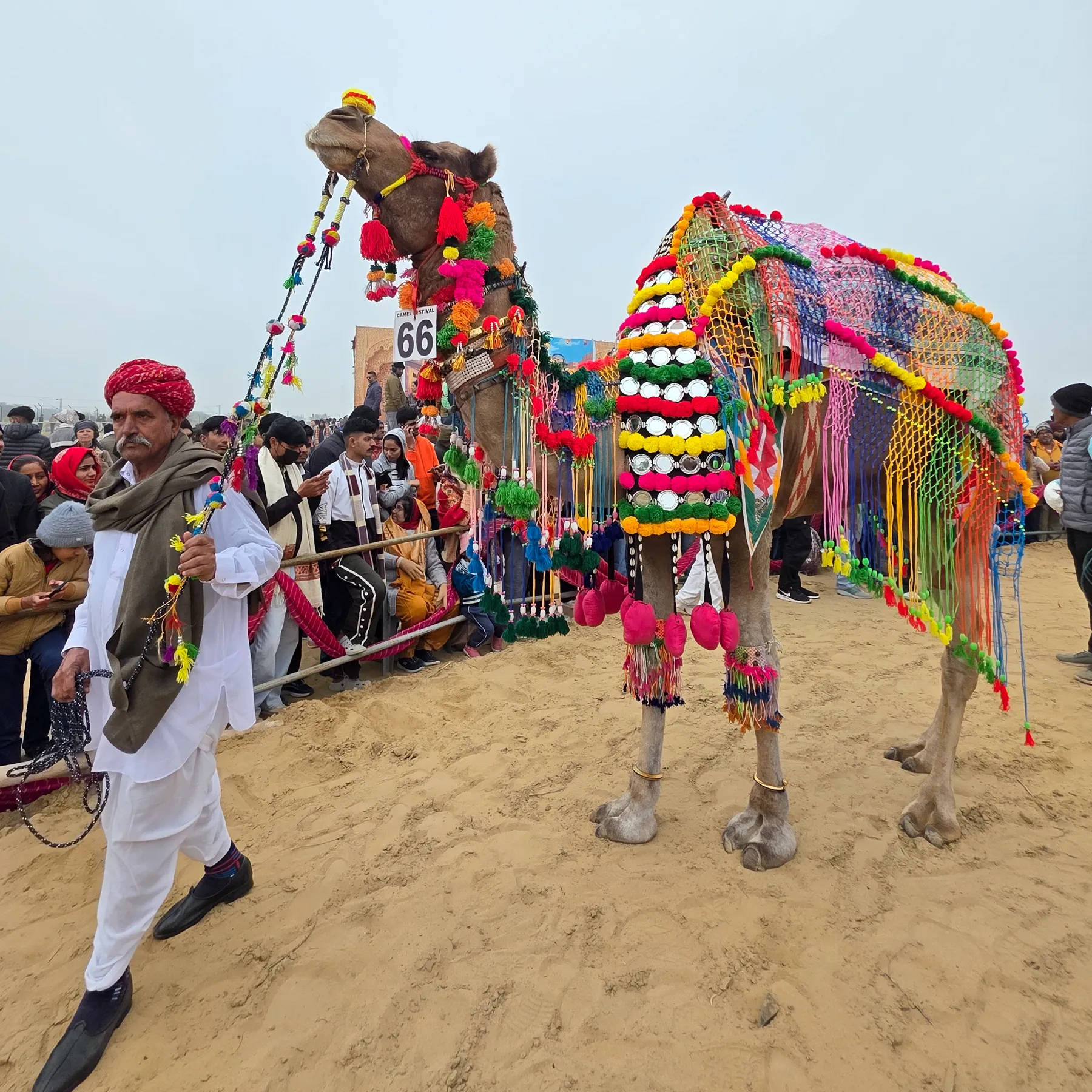 कैमल डेकोरेशन (ऊंट श्रृंगार): राजस्थान में ऊंट को परिवार का हिस्सा माना जाता है। इस प्रतियोगिता में ऊंटों को रंग-बिरंगे गहनों, कशीदाकारी वाले कपड़ों और मोतियों से सजाया गया था। जब ये सजे-धजे ऊंट वॉक करते हैं, तो ऐसा लगता है जैसे रेगिस्तान के जहाज ने शाही लिबास पहन लिया हो।