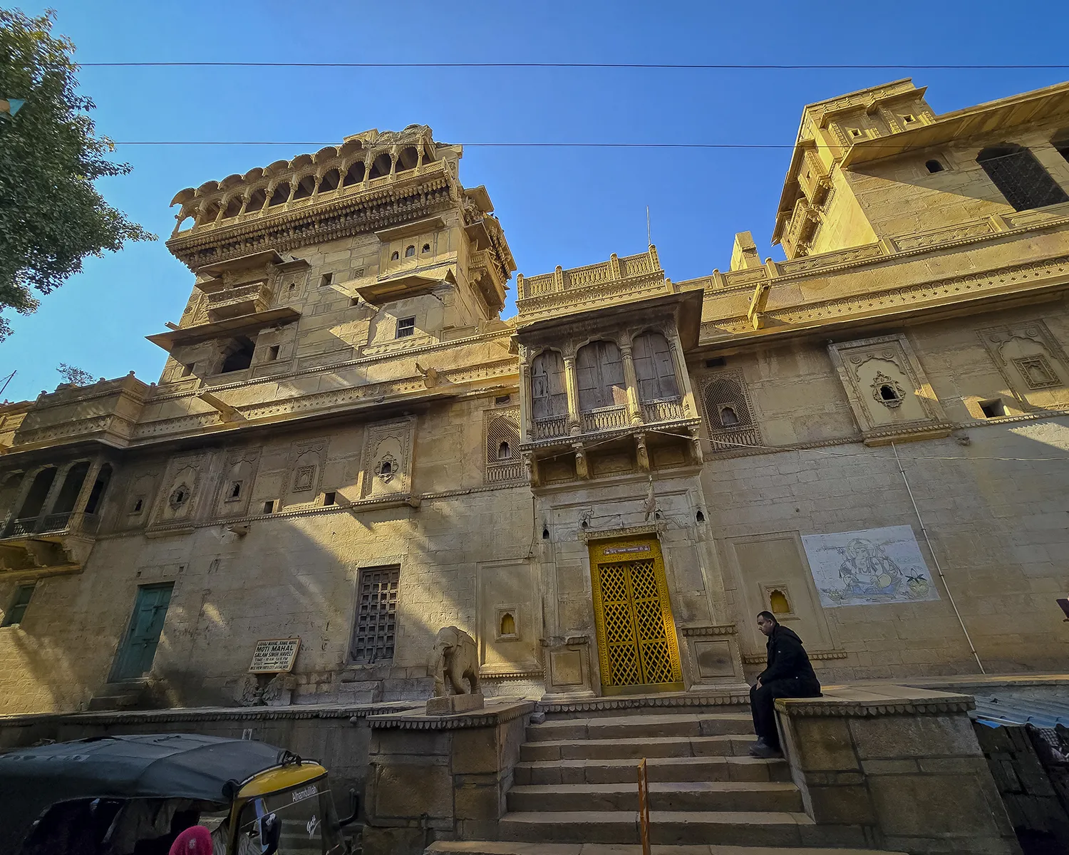 पटवों की हवेली: पत्थर पर की गई ऐसी बारीक नक्काशी कि यकीन करना मुश्किल हो जाए। हालांकि, सैलानियों की जबरदस्त भीड़ की वजह से हम अंदर तो नहीं जा सके, लेकिन इसकी बाहरी बनावट (Exterior) को निहारना और तस्वीरें लेना भी किसी ट्रीट से कम नहीं था।