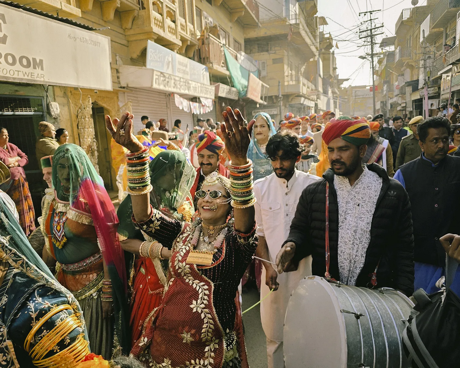 उत्सव की शुरुआत ऐतिहासिक गडीसर लेक से हुई। सुबह की हल्की धूप और झील के शांत पानी के बीच से जब शोभायात्रा निकली, तो पूरा शहर थम सा गया। सजे-धजे ऊंट, लोक कलाकार और राजस्थानी वेशभूषा में झूमते लोग जब जैसलमेर किले (सोनार किला) के पास से होते हुए मुख्य बाजार की तंग गलियों से गुजरे, तो ऐसा लगा मानो इतिहास फिर से जीवित हो उठा है।