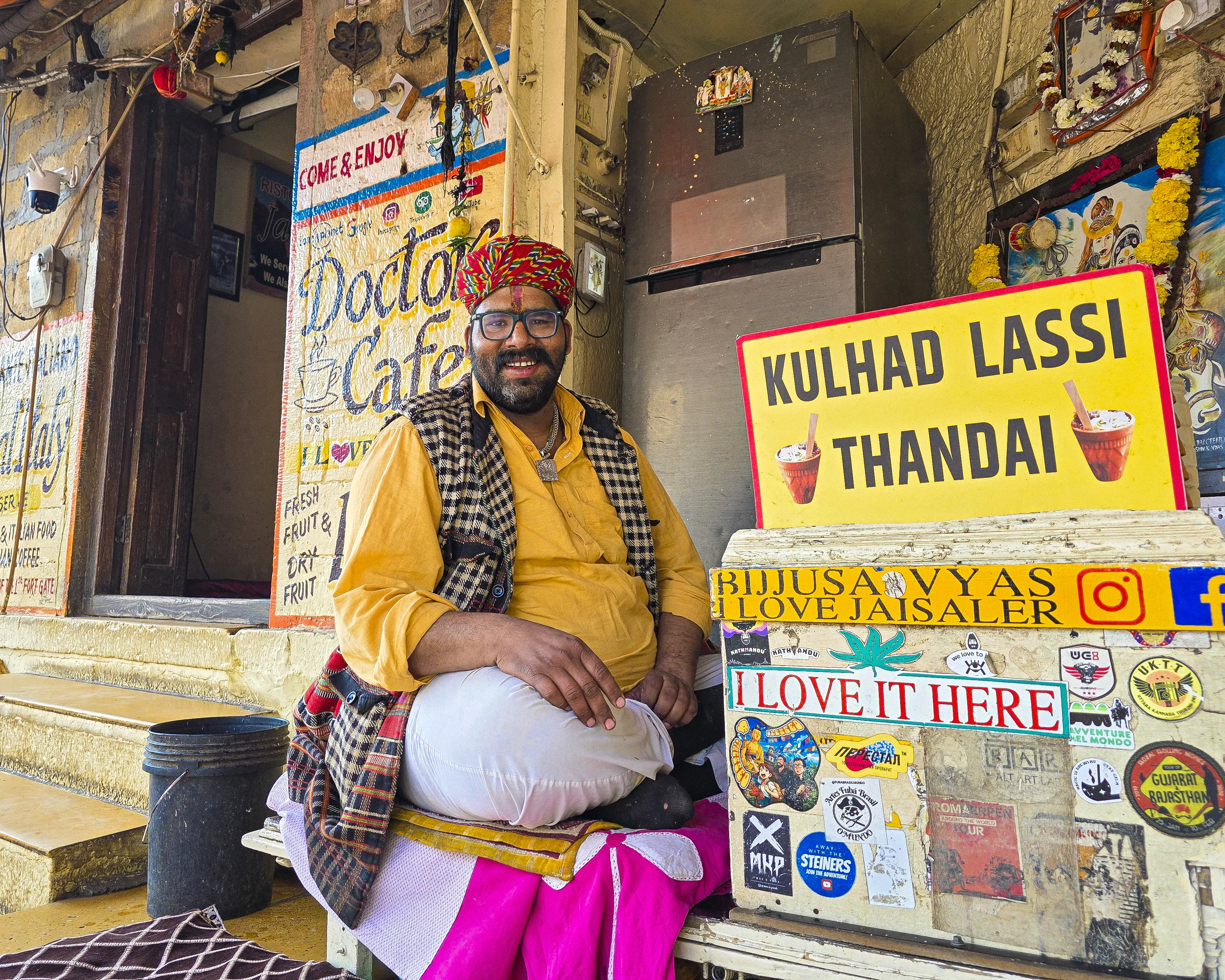 जैसलमेर की गर्मी में अगर कुछ राहत देता है, तो वह है 'डॉक्टर लस्सी'। गोपा चौक के पास स्थित इस दुकान के ओनर बज्जू भा अपने खास अंदाज और प्यार के लिए जाने जाते हैं। 100 रुपये के गिलास में आपको काजू, बादाम, पिस्ता और गुलकंद से भरपूर शाही लस्सी मिलती है।