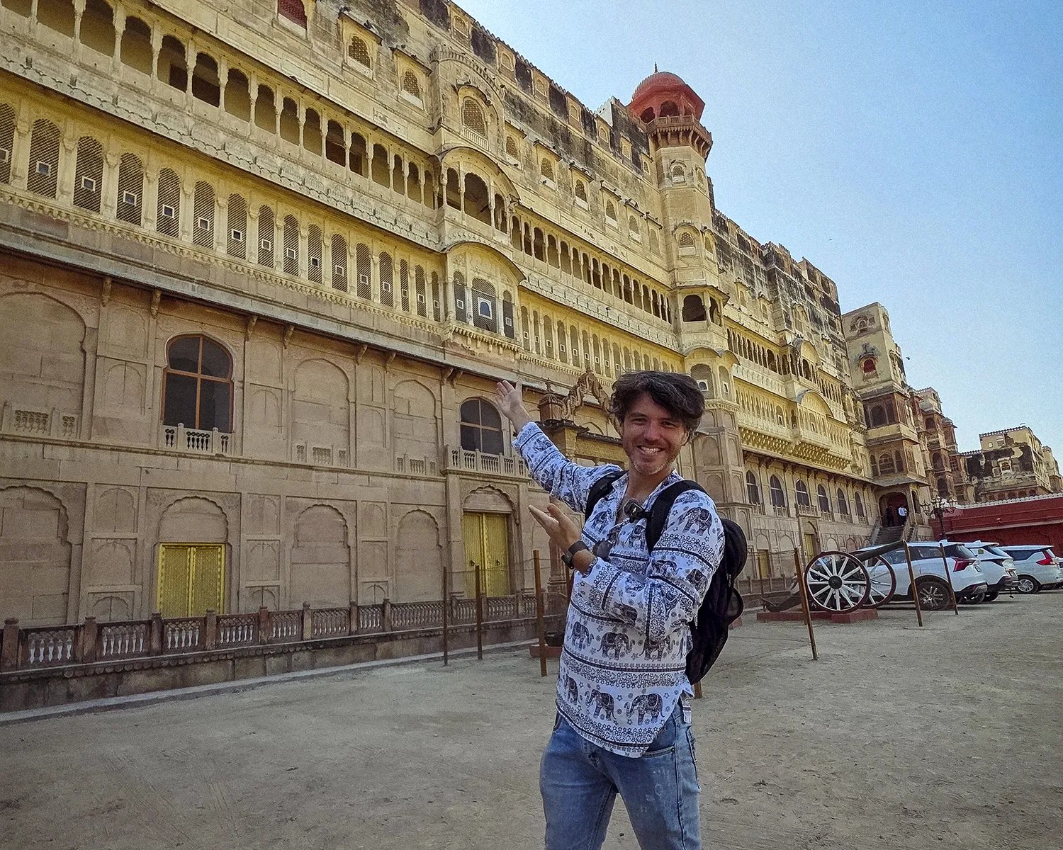 We started at the Rampuria Haveli. Charlie’s jaw hit the floor. He said he’d never seen carvings like this in his life. I let him take his "aesthetic" photos, but my stomach was growling.